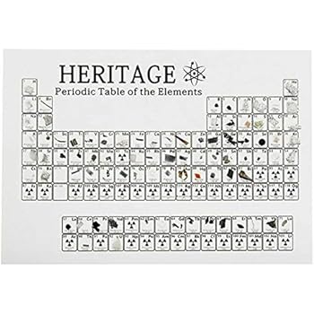 Heritage periodic table. The heritage periodic table measures approximately 45 x 6 x 1 114mm x 1524mm x 254mm. We are the only ones that make them right here in the usa. The periodic table contains pure bubbles of the gaseous elements xenon krypton argon neon helium oxygen nitrogen and hydrogen.