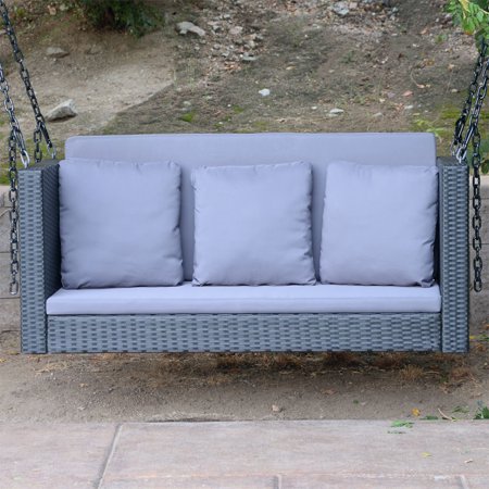 Black 53 Patio Porch Swing Chair Bench Resin Wicker Tree Ceiling