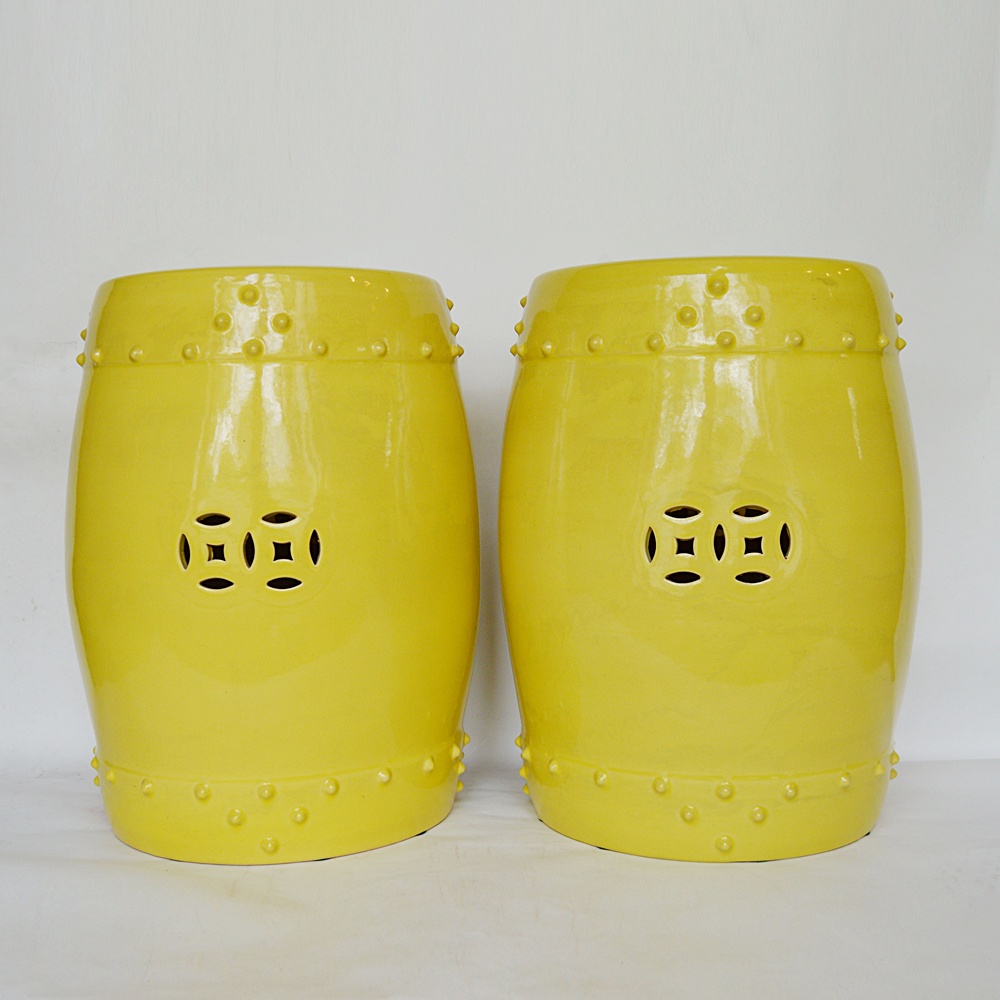 Chinoiserie Yellow Glazed Ceramic Garden Stools Made In Vietnam