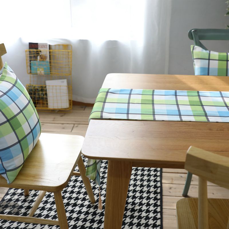 Modern Green And Blue Plaid Table Runner Cotton Canvas Fabric