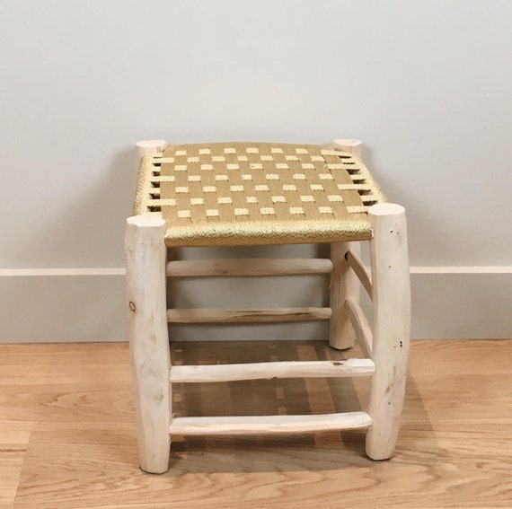 Moroccan Stool Wooden Plaiting In Golden Thread Anne Yellow Etsy