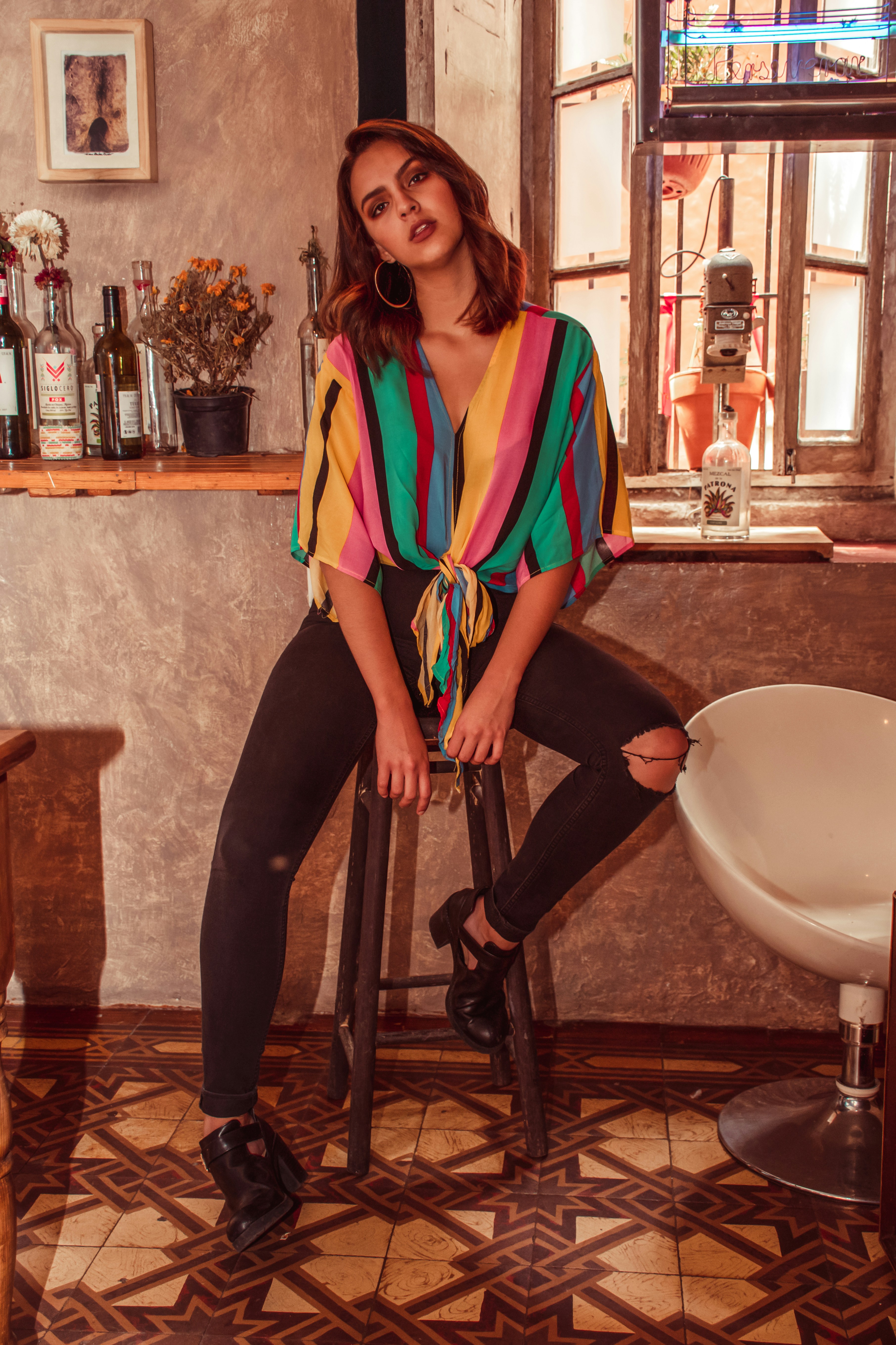Woman Sitting On Bar Stool Photos By Canva