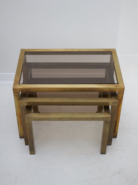 1960s Vintage Brass Glass Nest Of Tables La193256