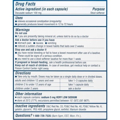 Colace Regular Strength Stool Softener 100 Mg Capsules Docusate